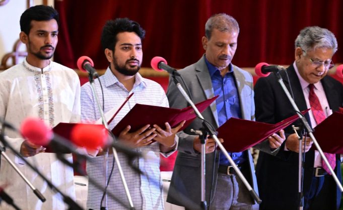 Tras la caída del gobierno de Hasina, hubo que llenar rápidamente el vacío de poder. Dr. Samina Luthfa, profesora de sociología en la Universidad de Dhaka, dice que encontró al Islam inusualmente nervioso el día que los estudiantes anunciaron al pueblo el gobierno interino. “Es muy joven, era una gran responsabilidad”.