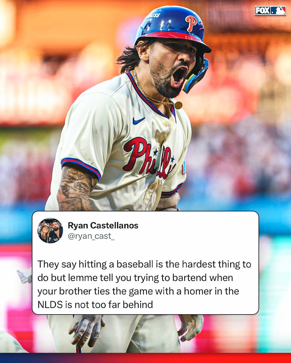 Con dos outs en la novena, todos estaban preparados para que Castellanos fuera el héroe – o el villano – después de que Turner y Harper consiguieran bases por bolas consecutivas. Castellanos consiguió su quinto abandono del año cuando volvió a salir adelante en la parte baja del juego, conectando el sencillo ganador al jardín izquierdo y siendo acosado en el campo por sus compañeros de equipo. “Mira, sabíamos que podías hacerlo”, parecía decir la bulliciosa multitud de Filadelfia, saltando y gritando.