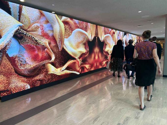 Gran modelo natural a seguir: Coral, obra del diseñador y artista Refik Anadol, ocupa uno de los pasillos más concurridos de la sede de la organización en Nueva York durante la semana de alto perfil de este año centrada en el cambio climático y la IA.